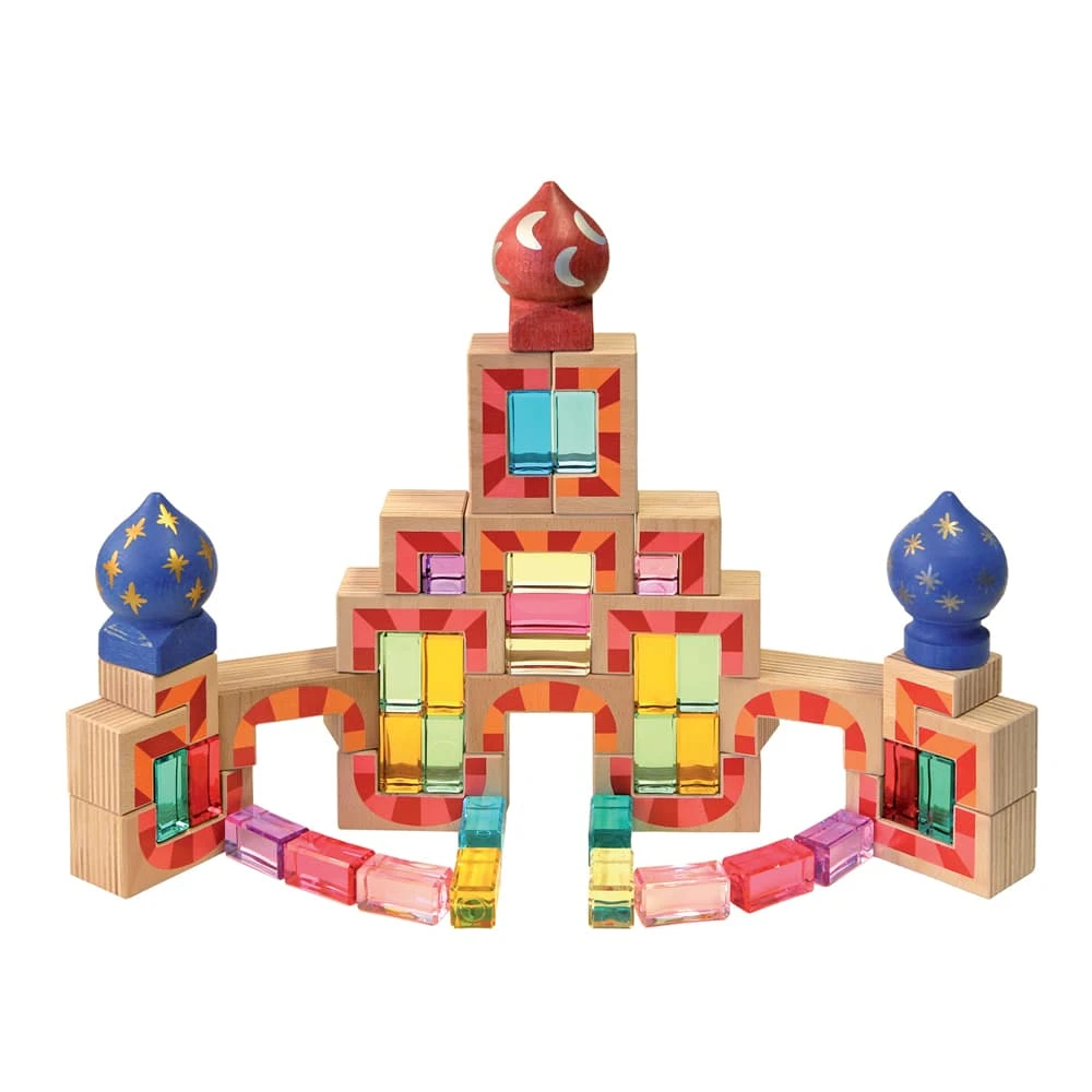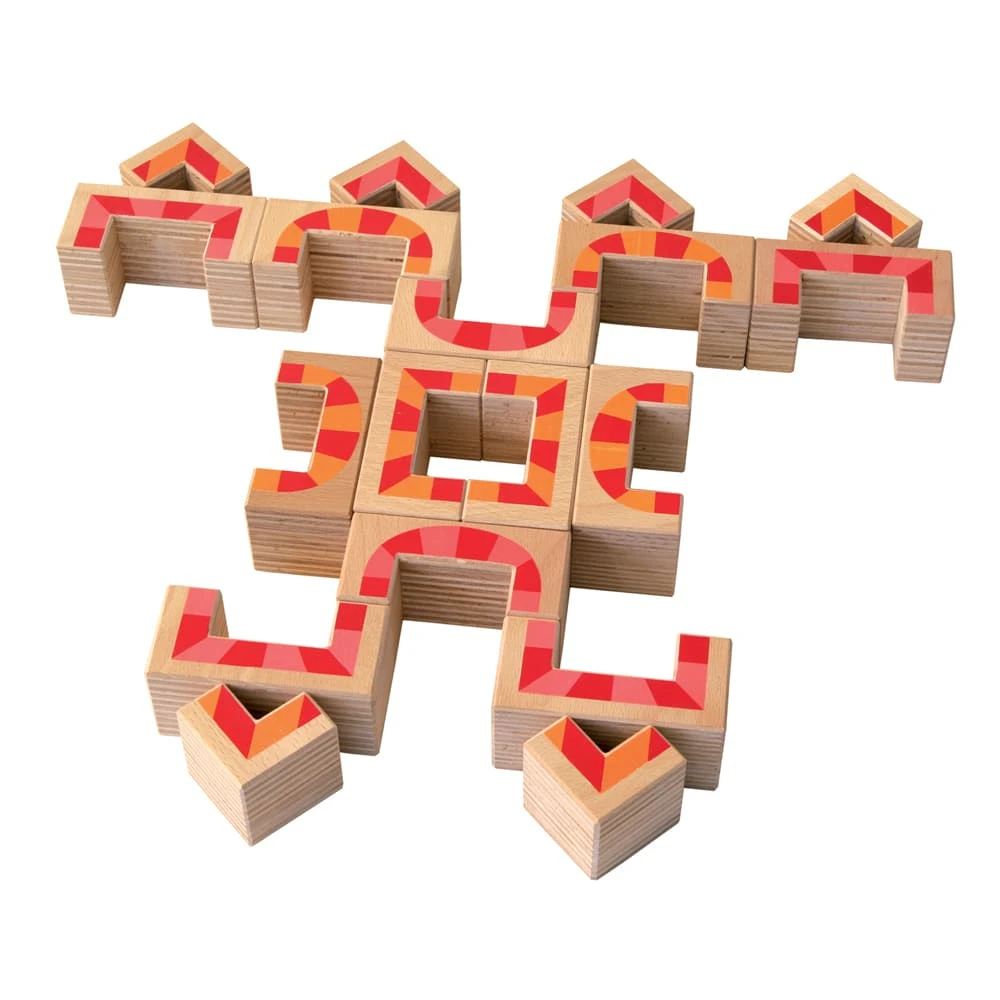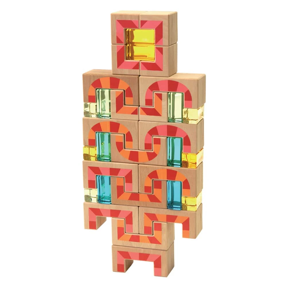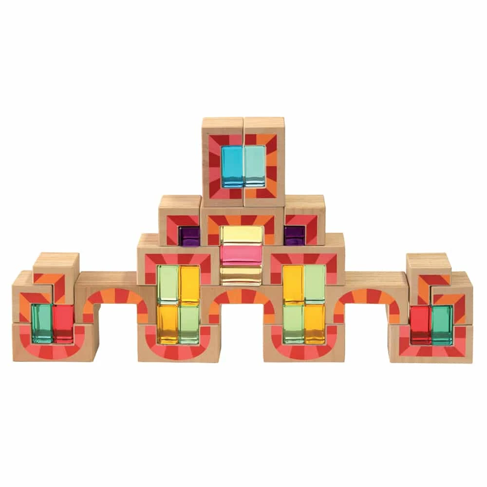 Enhance your creative building skills with this unique set of Antique Windows Building Blocks. Featuring 18 digitally printed elements in 2 shapes, this colourful set comes in pink, red, and orange hues. These sturdy, double sided blocks are perfect for hours of imaginative play.