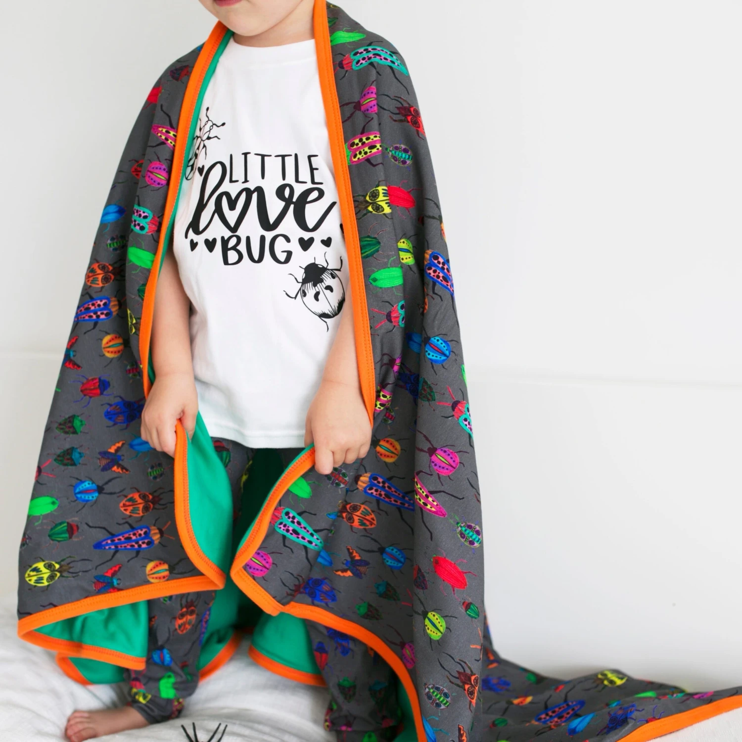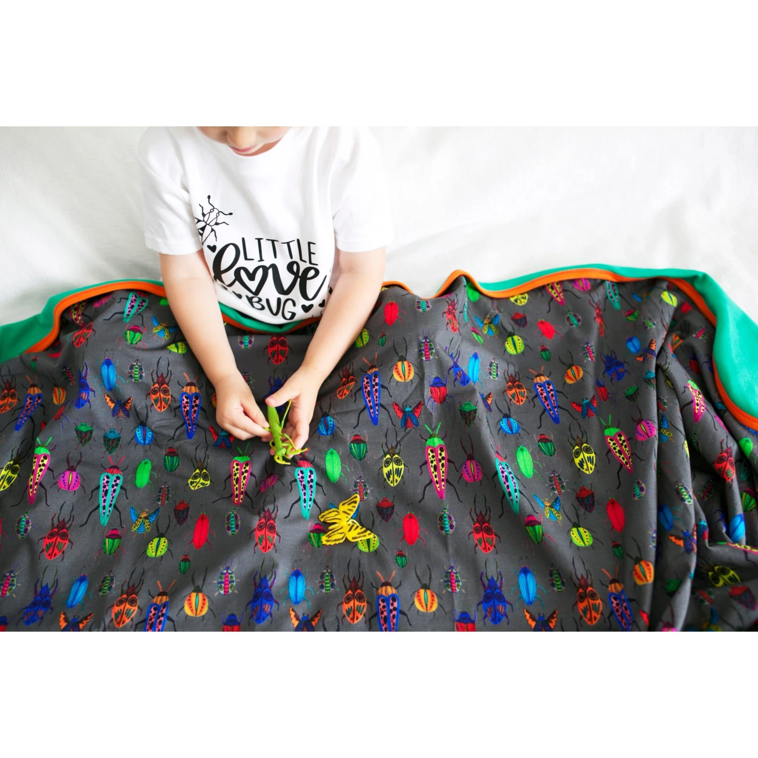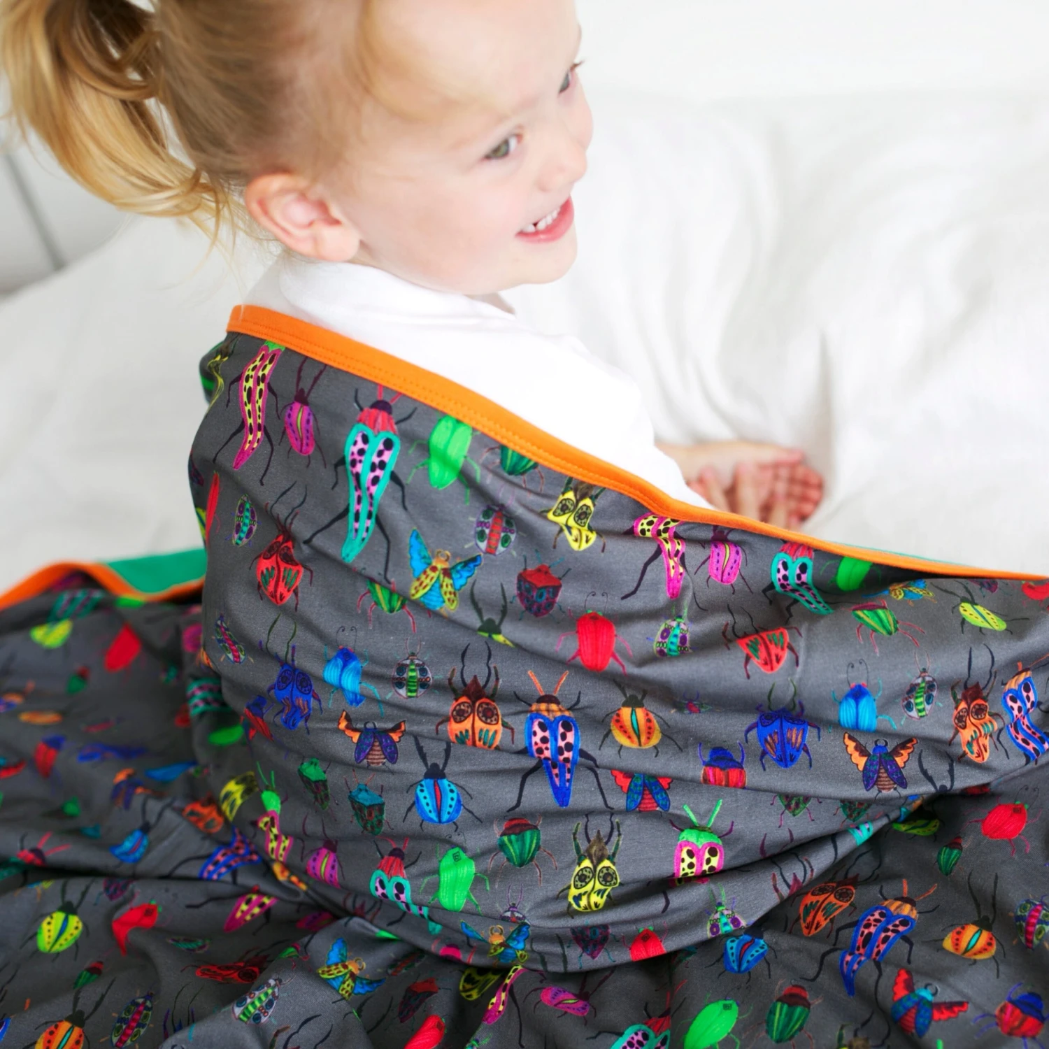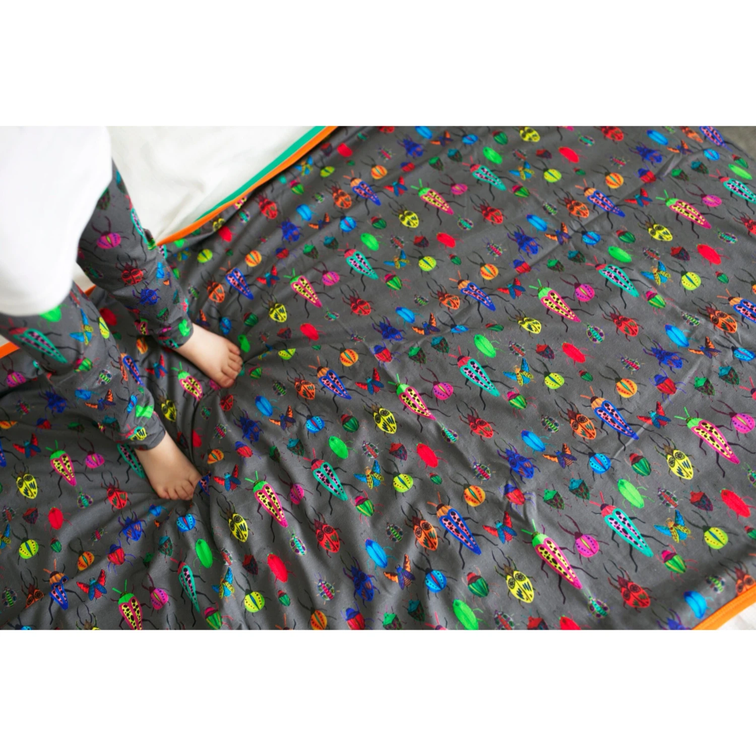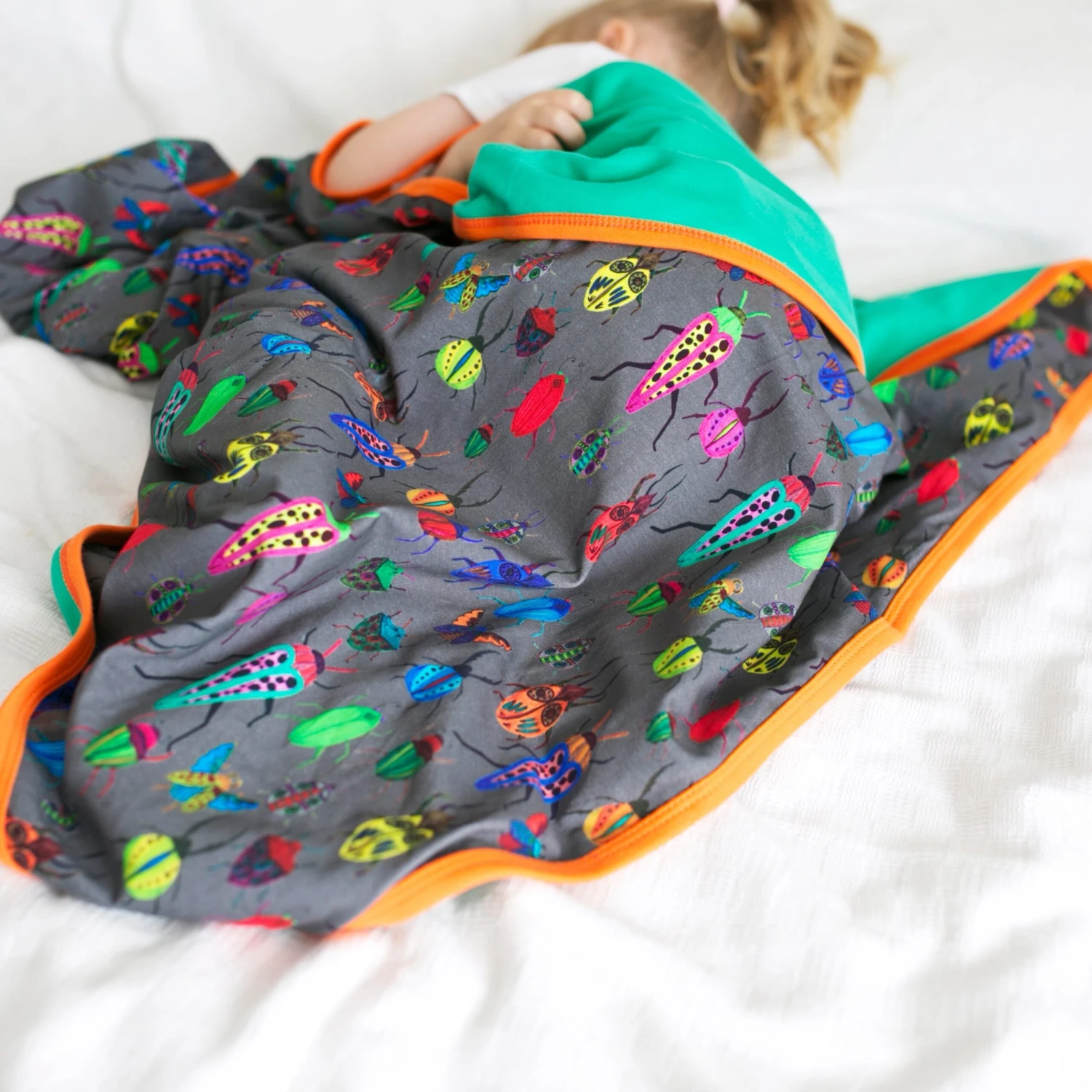 The Beautiful Bugs XXL Blanket is crafted from incredibly soft cotton, offering comfort and protection for delicate skin. Double-layered and machine washable, this blanket is designed to maintain its shape and provide a fashionable look for your child while they snuggle. Manufactured in England.