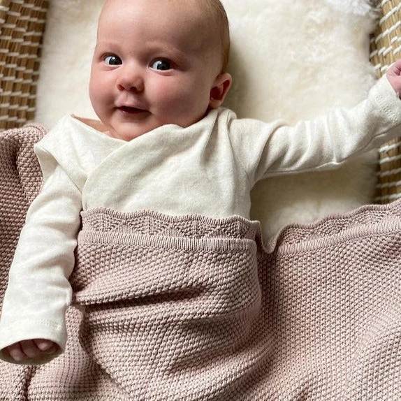 Provide baby with utmost comfort and love with this beautiful Knitted Blanket – Mauve Featuring a timeless knitted design and soft edging, this blanket is perfect for a gentle touch on baby’s delicate skin. An ideal gift for any newborn.