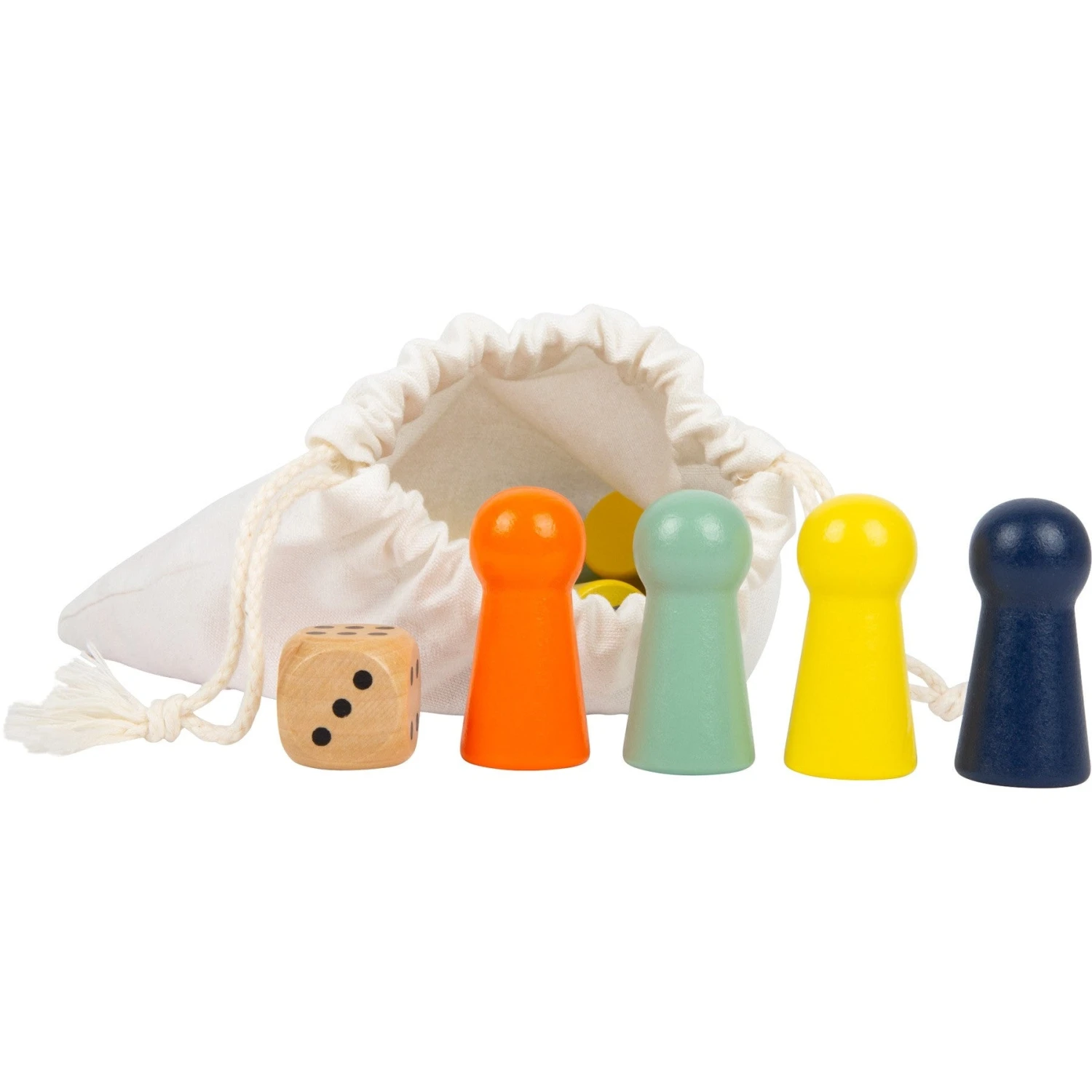 Ludo fun in a large format! With this classic wooden game. the goal is to be the first one to get your game pieces into the little house. The highlight: the extra-large game field and the large game pieces make it easy for players with small or unsteady hands to place them. The round notches ensure that the game pieces stand up sturdily. Comes with cloth bag. Huge fun for the whole family! Lucky players will be able to knock their opponents’ game pieces their spots back to the starting point. The die and the 16 game pieces in the colours of orange. yellow. blue. and mint green can be securely stored in the included cloth bag. This classic game guarantees big playtime fun and belongs in every game closet. Using the die also playfully trains children to count.