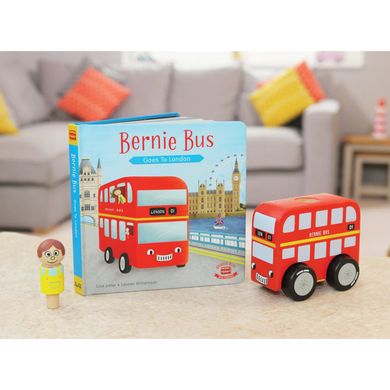 Discover Bernie and Evelyn’s exciting travels around London with this board book and mini Bernie Bus toy. This perfect birthday gift set with its accompanying ‘Bernie Bus Goes to London’ book is sure to spark a child’s imagination. The wooden toy is crafted from sustainably-sourced rubberwood.