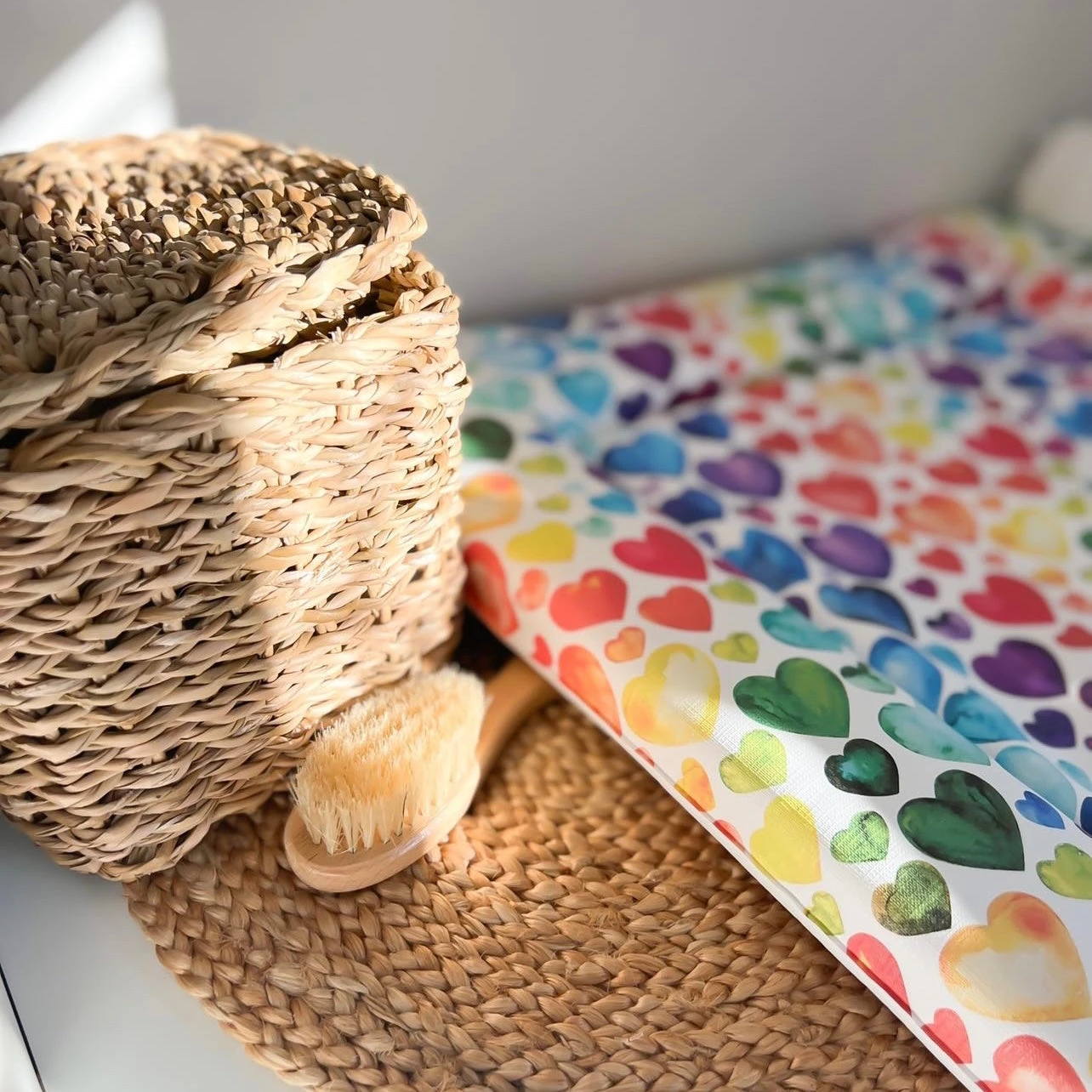 Our luxury Rainbow Heart Print Changing Mats are the ideal accessory for any nursery. Produced here in England with a waterproof, phthalate-free PVC and British-made, nursery-grade foam, these mats are the perfect solution to meet your needs.