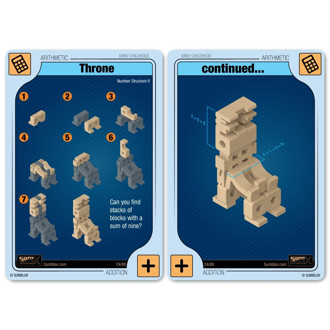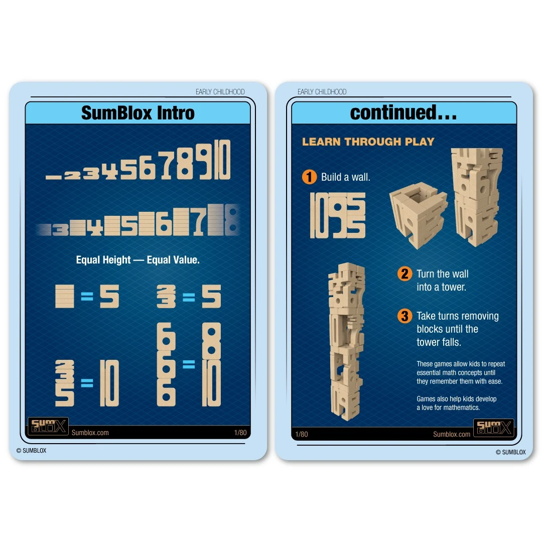 This deck of 80 activity cards is designed for a set of SumBlox including 80 blocks.